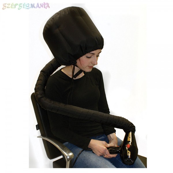 Mobil hajszárító búra. Fekete színben. Szinte minden hajszárítóhoz csatlakoztatható. Tároló táskával.