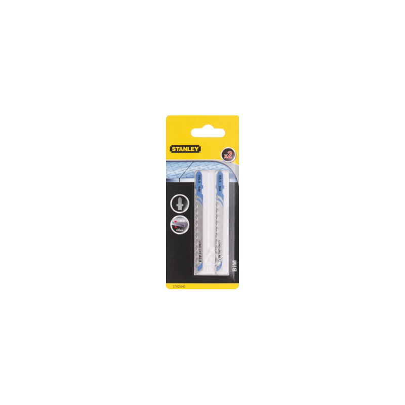Dekopír fűrészlap Stanley - fémhez aluminiumhoz és PVS-hez - egyenes vágásra - T befogás - kés anyaga: BiMetál - teljes hossz: 100mm - munkahossz: 72mm - fogosztás: 3mm