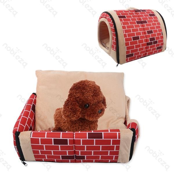 Fekhellyé alakítható beltéri kutyaház, piros alapon tégla mintás, 45 x 35 x 32 cm
