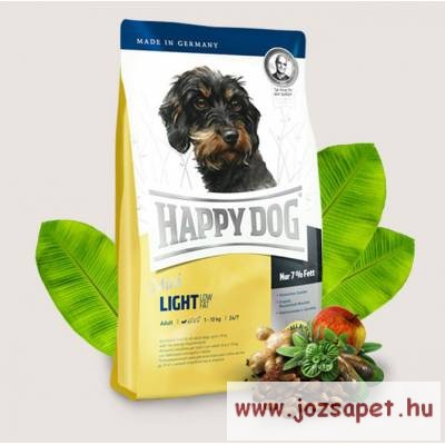 Happy Dog Mini Light (Low Fat) kutyatáp 4 kg, hízásra hajlamos, vagy elhízott kistermetű kutyának. Csupán 7% zsír Gluténmentes összetevők Eredeti új-zélandi kagyló Vitalizáló L-karnitin Happy Dog Mini Light (Low Fat) kutyatáp 4 kg hízásra hajlamos, vagy elhízott kistermetű kutyának. Csupán 7% zsír Gluténmentes összetevők Eredeti új-zélandi kagyló Vitalizáló L-karnitin A kistestű, elhízásra hajlamos kutyáknak különösen könnyű, laktató, és mégis ízletes, alacsony zsírtartalmú eledelre van szükségük! A Happy Dog Mini Light kutyatáp tökéletes recepttel rendelkezik: a könnyen emészthető, szuper prémium eledel alapját értékes fehérjeforrások és a természetes összetevőkből készült, egyedülálló Happy Dog Natural Life Concept® képezik. A 24% fehérje mellett csupán 7% zsírt tartalmaz. Az eredeti új-zélandi kagylóval és vitalizáló L-karnitinnel gazdagított Mini Light megfelelő eledel a kistestű felnőtt kutyák számára. Ha az alacsony energiatartalom a testi adottságoknak megfelelő, napi 1-3 órás mozgással párosul, akkor az egyéni igényeknek megfelelő táplálkozás hosszú távra stabilizálhatja kutyánk súlyát, így megelőzhetők a túlsúlyból eredő problémák. Fajtabarát táplálék … a természet példáját követve! Összetétel Kukorica, szárnyashús fehérje**, rizsliszt, burgonyafehérje*, cellulóz, lazacliszt, halliszt, bárányhús fehérje*, májhidrolizátum, melaszszelet (cukormentesített)*, szárnyaszsír, almatörköly* (0,8%), nátriumklorid, szárított tojáspor, élesztő*, káliumklorid, tengeri algák* (0,15%), lenmag (0,15%), kagylóhús* (0,02%), máriatövis, articsóka, gyermekláncfű, gyömbér, nyírfalevelek, csalán, kamilla, koriander, rozmaring, zsálya, édesgyökér, kakukkfű, élesztő (kivonat)*, (szárított füszerek összesen: 0,14%). (* szárított, ** szárított, részben hidrolizált) Analitikai összetevők Nyersfehérje 24%, nyerszsír 7%, nyersrost 3.5%, nyershamu 6%, kalcium 1.3%, foszfor 0.9%, nátrium 0.35%, omega-6 zsírsavak 1.8%, omega-3 zsírsavak 0.2% Adalékanyagok Vitaminok / kg: A vitamin (E672) 12000 I.E., D3 vitamin (E671) 1200 I.E., E vitamin (all-rac-alfa-tokoferil-acetát 3a700) 75 mg, B1 vitamin (tiamin-mononitrát) 4 mg, B2 vitamin (riboflavin) 6 mg, B6 vitamin (piridoxin-hidroklorid 3a831) 4 mg, D (+) biotin 575 mcg, kalcium-D-pantotenát 10 mg, niacin 40 mg, B12 vitamin 70 mcg, kolin-klorid 60 mg, L-karnitin 500 mg, antioxidánsok: magas tokoferoltartalmú természetes eredetű kivonatok. Nyomelemek / kg: Vas (E1; vas(II)szulfát; monohidrát) 105 mg, réz (E4; réz(II)szulfát; pentahidrát) 10 mg, cink (E6; cinkoxid; aminosav-cinkkelát; hidrát) 125 mg, mangán (E5; mangán(II)oxid) 25 mg, jód (E2; kalcium-jodát; vízmentes) 2 mg, szelén (E8; nátrium-szelenit) 0.15 mg Etetési útmutató a gyártó ajánlása alapján: Súly Napi szükséglet 1 kg 25 g 2 kg 45 g 3 kg 60 g 4 kg 75 g 5 kg 90 g 6 kg 100 g 8 kg 125 g 10 kg 150 g