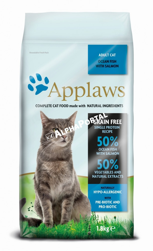 Teljes értékű száraz eledel felnőtt macskák részére. Összetétel: friss fehér hal (18%), borsó, hering liszt (12%), csicseriborsó liszt, lencse, friss lazac (8%), fehérhal liszt (5%) lenmag, sörélesztő, lazacolaj (3%), lucerna, lazac liszt (2.5%), hidrolizált hal fehérje (2.5%), szárított vörösáfonya, vitaminok és ásványi anyagok, kókusz olaj, szárított alma, szárított körte, inulin, szárított áfonya, szárított paradicsom, szárított spenót, citrus kivonat, rozmaring kivonat, yucca kivonat. Analitikai alkotórészek: nyersfehérje 34%, nyers olajok és zsírok 15%, nyersrost 6%, nyershamu 10%, Omega-6 3%, Omega-3 1,2%, taurin 2,000mg/kg. Adalékanyagok: A-vitamin (retinyl acetát) 27.850 NE/kg, D3-vitamin (kole-kalciferol) 1.200 NE/kg, E-vitamin (alfa-tokoferol acetát) 615 mg/kg: Nyomelemek: szelén, mint nátrium-szelenit 0,13 mg/kg, jód, mint kalcium-jodát, anhydrous 1,5 mg/kg, vas, mint vas-szulfát, monohidrát 80 mg, réz, mint réz-szulfát, pentahidrát 48 mg/kg, mangán, mangán-szulfát, monohidrát 38 mg/kg, cink, cink-szulfát, monohidrát 135 mg/kg. Technológiai adalékanyagok: E1705 Enterococcus faecium cernelle 68 (SF68; NCIMB 10415) 1.000.000.000 cfu/kg, mint segédanyag a macskák kiegyensúlyozott bélflórájának kialakítása, fenntartása és helyreállítása érdekében, természetes antioxidánsok: tokoferolok és rozmaring kivonat. Etetési javaslat: kistestű 1.25-3kg : 20-40g / közepestestű 3-5kg : 40-60g / nagytestű 5-8kg : 60-100g. Biztosítson mindig friss, tiszta ivóvizet kedvence részére. Kedvtelésből tartott állatok etetésére szolgáló termék.
