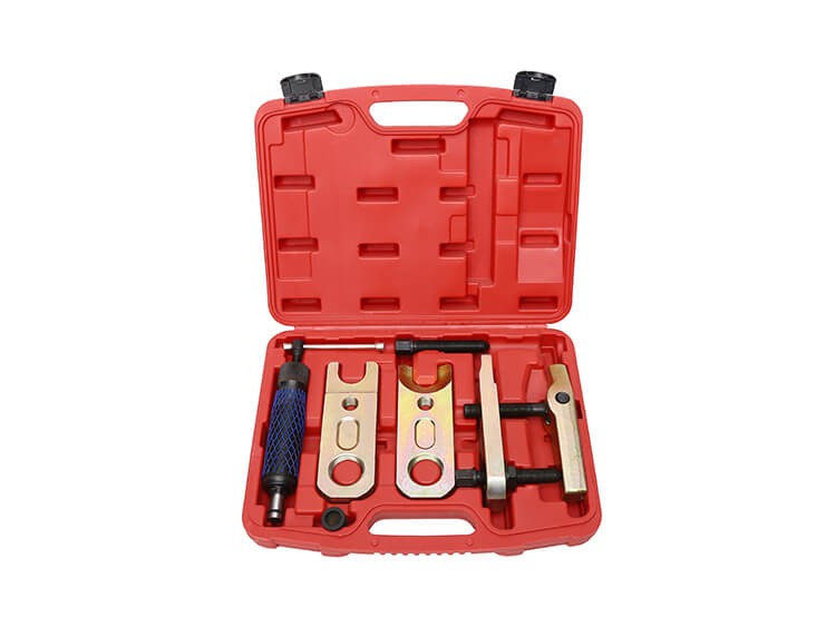 Befogási méret: 30; 34; 40mm Nagy teherbírású hidraulikus/manuális gömbfej kinyomó készlet, 6 darabos Elsősorban tehergépjárművek javításához ajánlott. Működtethető kézzel, vagy a készlet részét képező 12 tonnás munkahengerrel. A készlet tartalma - nagy teherbírású kinyomó szerkezet - 3db cseréhető Állkapocs villa; befogó szélesség: 30, 34, 40mm - 2db menetes szár kézi hajtáshoz, hossz: 80, 100mm. Hajtás 19-es kulcs/crowa - 12t hidraulikus munkahenger, működtetés hajtószárral G2/3 Alkalmas a nyomtávrúd végek, gömbcsuklók szétválasztására.