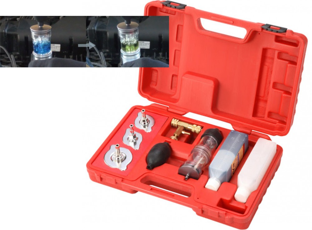 A legkisebb szivárgások kimutatásához, például a hengerfejtömítésnél vagy hajszálrepedések a motorblokkban stb. benzin-, dízel- és gázmotorokhoz is alkalmas lehetővé teszi a csekély mennyiségű szén-dioxid kimutatását a hűtőfolyadékban a vizsgálati folyadék elszíneződése révén (kék - zöld - sárga) lehetővé teszi a tökéletes és egyszerű diagnosztizálást A tesztfolyadék felhasználható további vizsgálatokhoz A készlet 250ml tesztfolyadékot tartalmaz GL 1/1 Egy kis segítség az eszköz használatához: