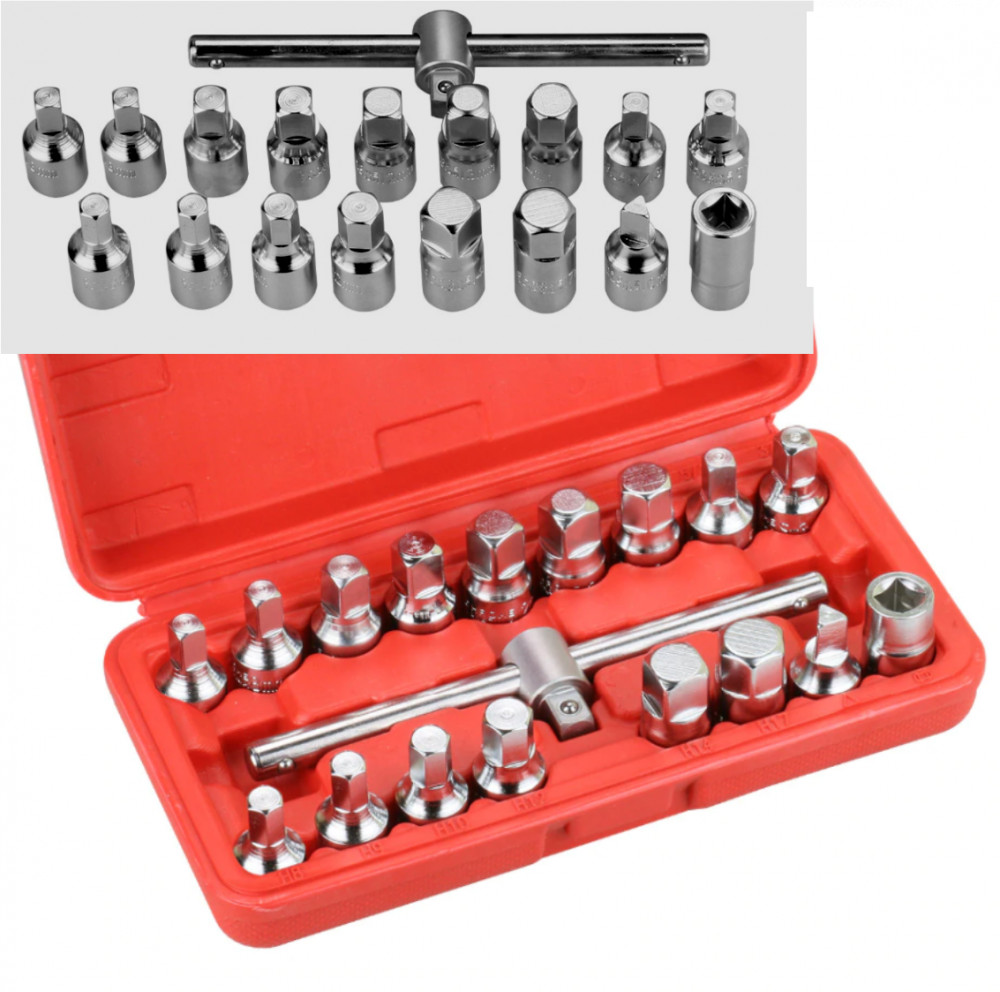 3/8-OS T-HAJTÓSZÁR 6db hatszög (imbusz) bitfej: 8; 9; 10; 12; 14; 17mm 9db négyszög bitfej: 7; 8; 10, 11; 12; 13; 14mm; 5/16; 3/8 1db belső négyszög kulcs 10mm 1db háromszög bitfej HA-2010 G4/5