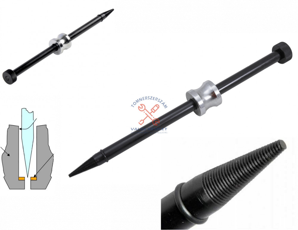 Alkalmazható: 4,5 mm – 13,2 mm Hossz: 350 mm Alkalmazás: A kúpos menetet a leragadt tűzkarikába behajtjuk, majd a súlykalapáccsal felütögetjük. G3/3