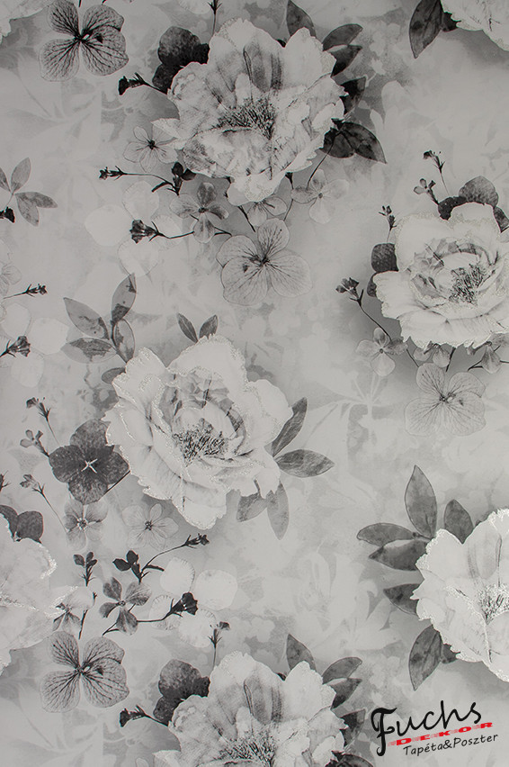 Papír tapéta Alapanyaga: papírtapéta Felülete: papír Mérete: 10,05m hosszú, 53cm széles /5,3m2/ Rapport (illesztés): 64 cm Szine:fehér,fekete,szürke minta,ezüst kontur Minőség I.o. Klasszikus papírtapéta. Ragasztóval a tapétát kell bekenni.